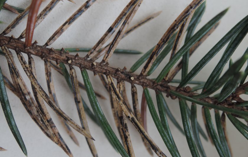 Распознать его можно по изменению окраса хвои (иголки становятся чёрным или бурыми), а также по появлению на побегах тонкой полупрозрачной паутины.